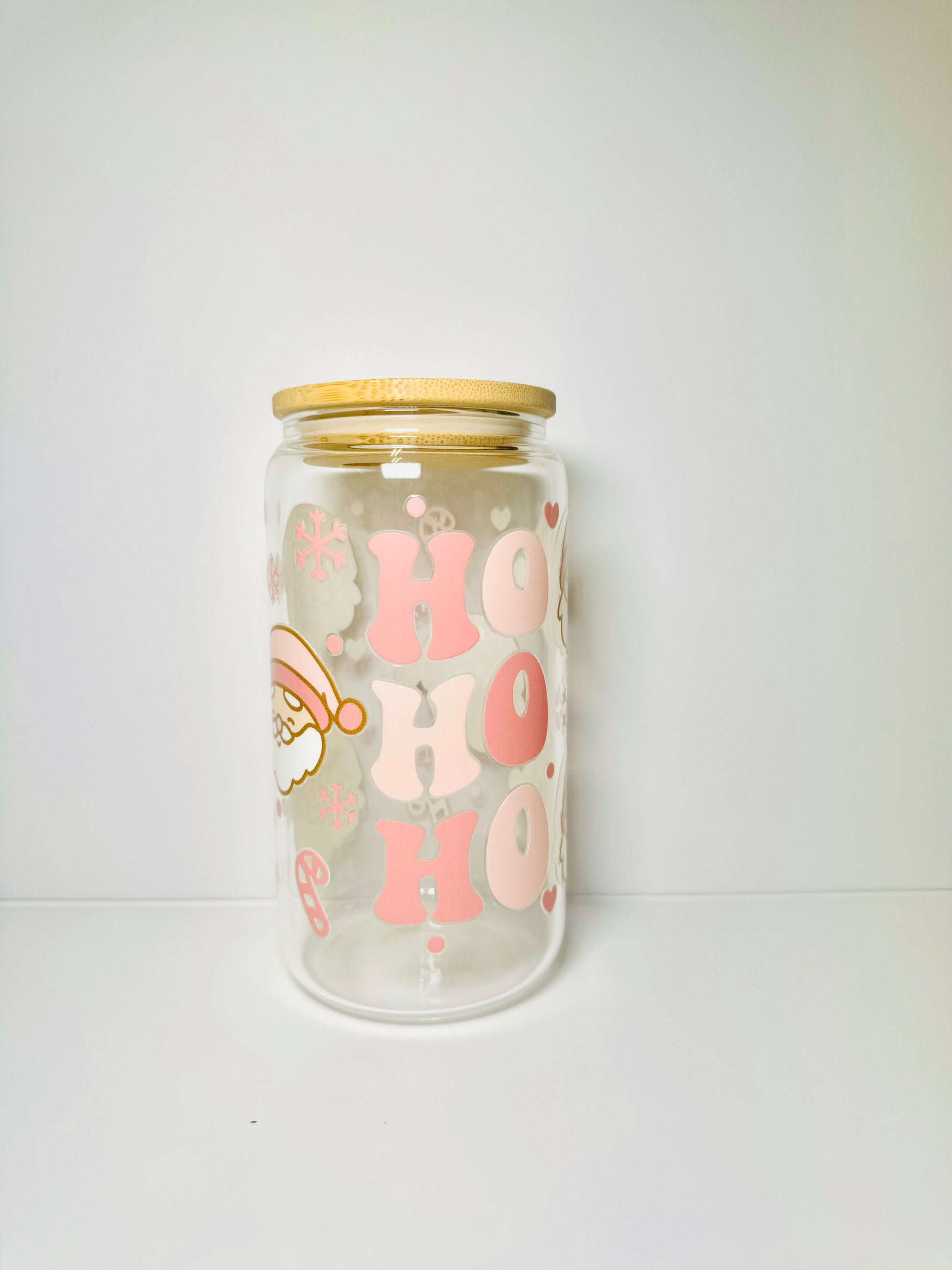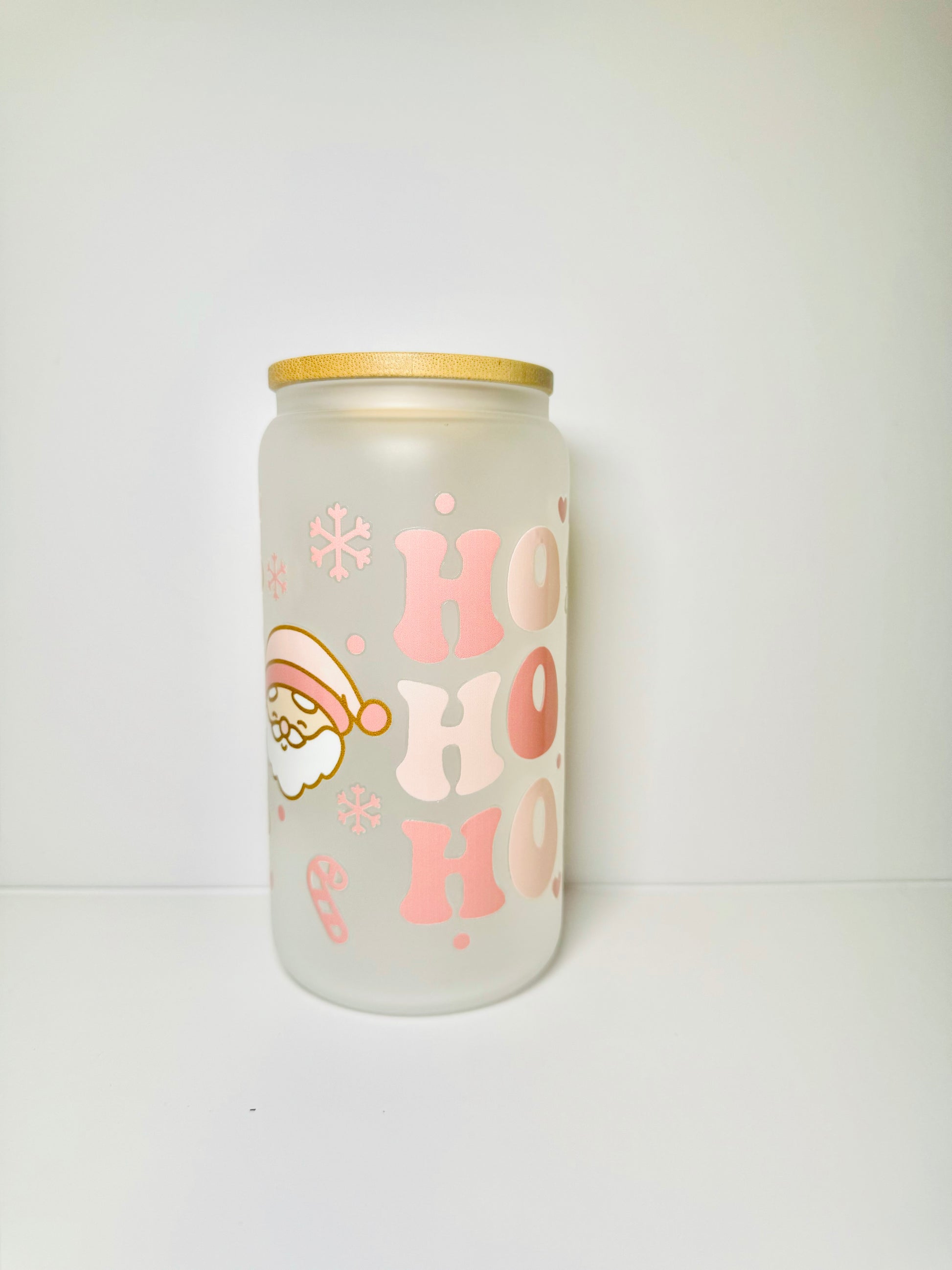 Santa Ho Ho Ho Christmas 16oz Glass Cup with Vibrant DTF Wrap