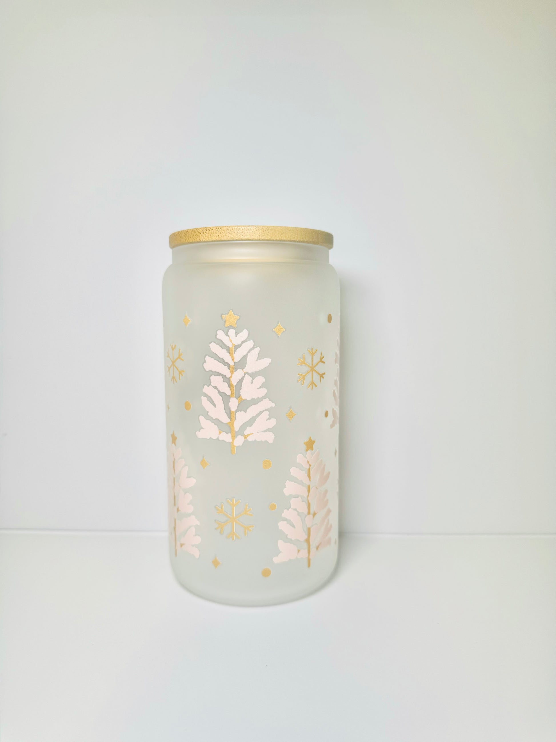 Trees Christmas 16oz Glass Cup with Vibrant DTF Wrap