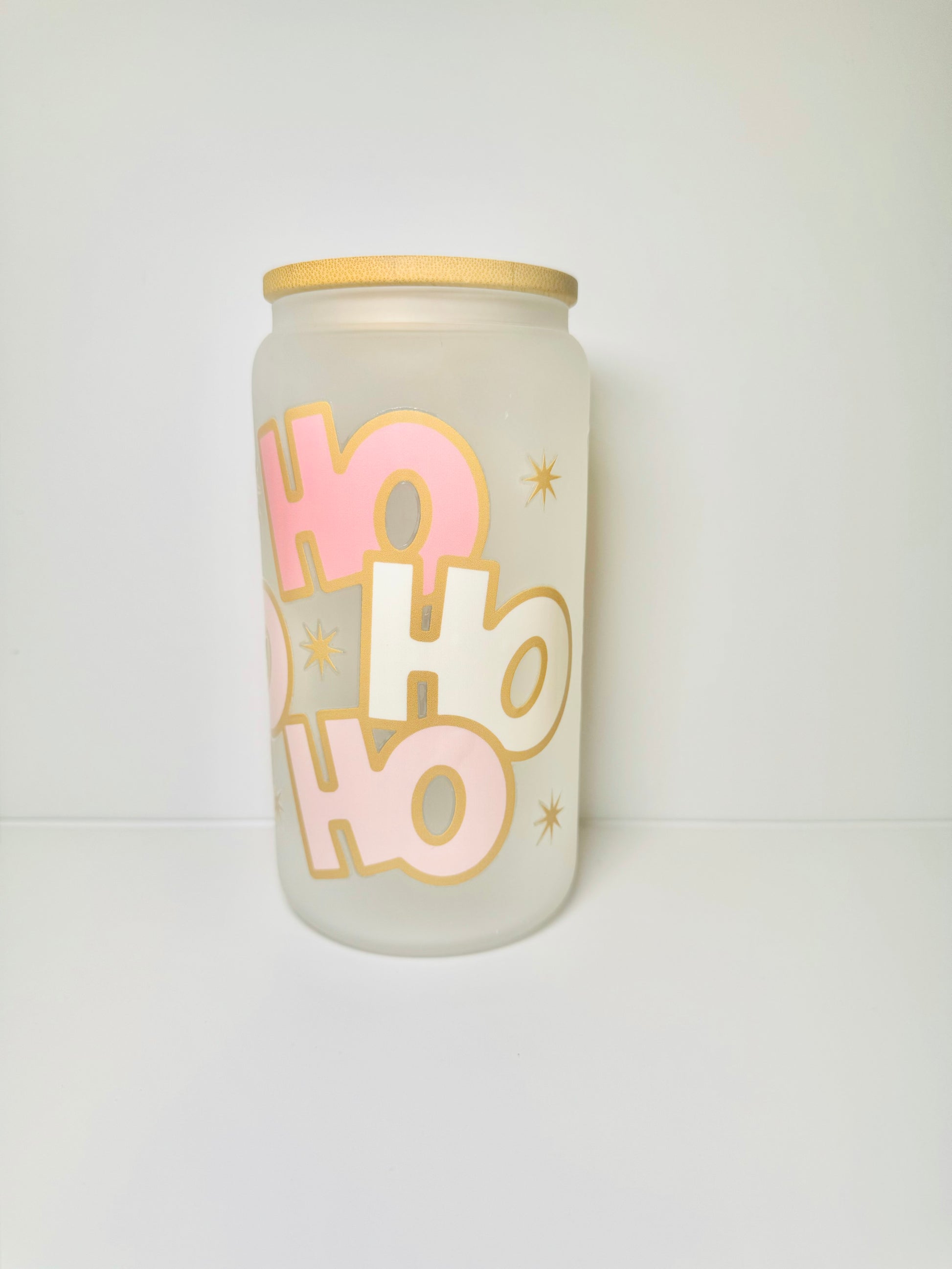 HoHoHo Christmas 16oz Glass Cup with Vibrant DTF Wrap